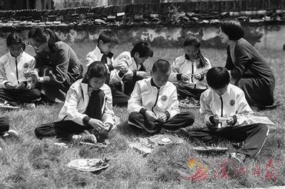 近日,诸暨市东白湖镇斯民小学的学生在“寻找春天的色彩课程”中制作花草画。从2023年2月开始,浙江省诸暨市东白湖镇斯民小学开启特色课程项目——“乡村艺课”。 新华社 发