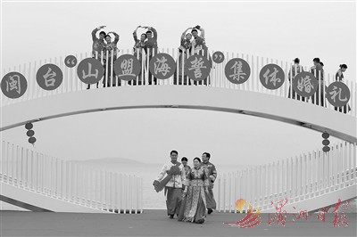 5月20日,闽台新人在集体婚礼上合影。当日,一场以“爱情恒久远、幸福长相伴”为主题的闽台“山盟海誓”集体婚礼暨2023年闽台婚姻家庭交流活动在福建省福州市平潭县举办。21对闽台新人身穿红色中式婚服,手牵红绣球,行跨火盆、踩瓦片、扎绣球和“合茶”、“合卺”、“海誓”等闽台传统结婚礼仪,结下跨越海峡的姻缘。 新华社记者 姜克红 摄