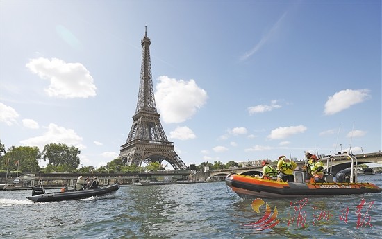 7月17日,船艇参加彩排。当日,巴黎奥组委在法国塞纳河上进行了一场奥运会开幕式迷你彩排。57艘船参与了这次彩排,数量相当于正式开幕式的近一半,其中39艘船为各体育代表团船只,另18艘船为服务船只(协助船、医疗救援船、OBS转播船)。新华社记者 高静 摄