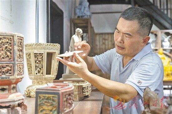 昔日与生活息息相关的果馔盘盒,正逐渐淡出人们的视野。如何留存城市记忆?吴文忠传承创新,眼下筹划着制作小件果馔盘盒,开发文创产品,还计划创作一件高3.23米的大件果馔盘盒,雕刻妈祖故事,申报吉尼斯世界纪录,赋能文旅产业发展,延续技艺,让果馔盘盒成为永恒的城市记忆。全媒体记者 黄凌燕 实习生 陈斐