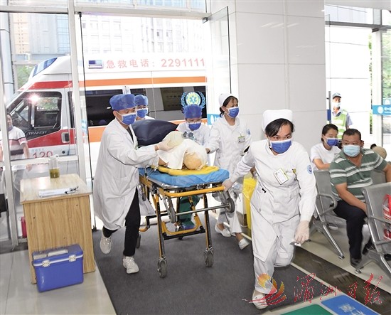 7月20日,莆田学院附属医院开展大批量创伤/烧伤患者救治应急演练暨紧急状态下护理人力资源调配应急演练,夯实医院急救队伍建设,提高医护人员应对突发事件的快速反应和有效处置能力,切实保障患者安全。黄筱军 陈雄威 摄