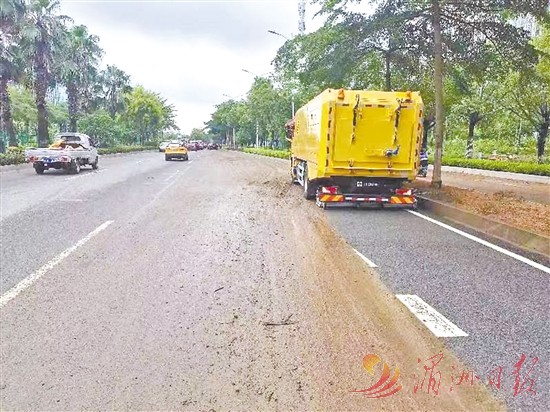 7月30日上午,记者在荔园北路三迪创富广场路段看到,海山机械挖掘抽吸车和道路污染清除车正在进行道路抽水、清淤等作业。车辆作业过的地方,路面积水很快被抽干,淤泥也完全被清除,道路刷洗如新。福建海山机械有限公司总经办主任林冠樱介绍,在发现道路内涝积水后,企业发挥在道路污染清除上的技术优势,立即组织道路污染清除车、挖掘抽吸车和工作人员投入积水路段的应急处置,仅2小时就完成荔园北路的排涝、清淤和保洁等多项任务。