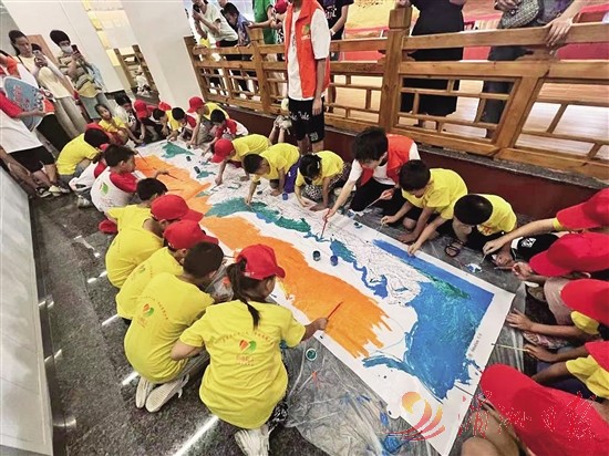 参观后,孩子们现场集体绘制《千里江山图》《清明上河图》(如图)。活动负责人介绍,此次研学活动,不仅让孩子们在游玩中拓宽了视野,增长了见识,还让他们认识了莆田特色文化,增强了文化自信。