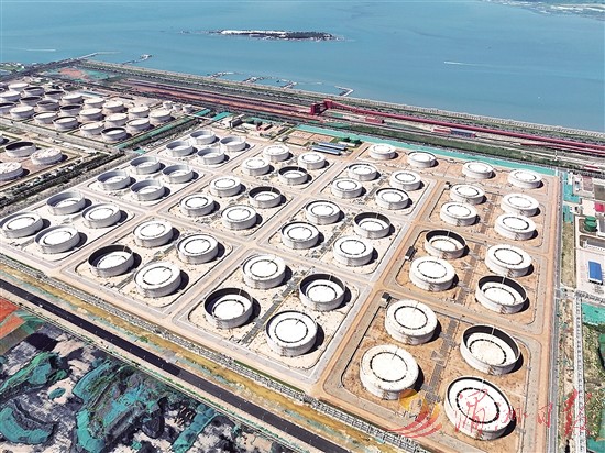 这是8月23日拍摄的山东港口青岛港董家口原油商业储备库。当日,山东港口青岛港董家口原油商业储备库(三期)投产仪式在青岛西海岸新区董家口港区举行。