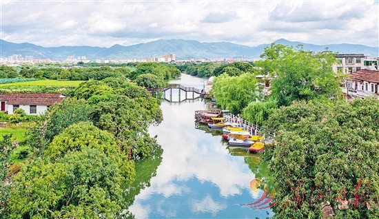 8月26日20点档,央视综合频道(CCTV-1)播出《山水间的家》节目。其中,主持人撒贝宁带领“山水小分队”走进我市涵江区白塘镇双福村,随荔农摘荔枝、观古厝、走古巷,呈现浓郁别致的荔乡情韵。图为双福村水清岸绿,生态优美。