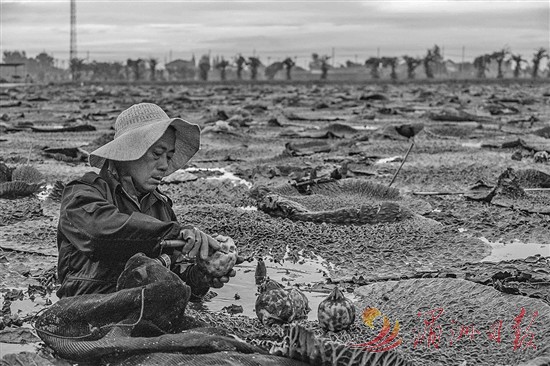 8月26日,江苏省泰州市姜堰区顾高镇申俞村农民在采收芡实。初秋时节,各地农民抢抓农时开展农事活动,田间地头一派繁忙景象。新华社 发