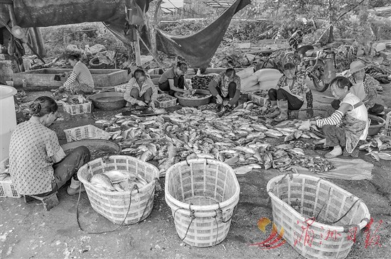 渔获丰收喜洋洋,渔家女们正高兴地清理鱼儿。王国红 摄