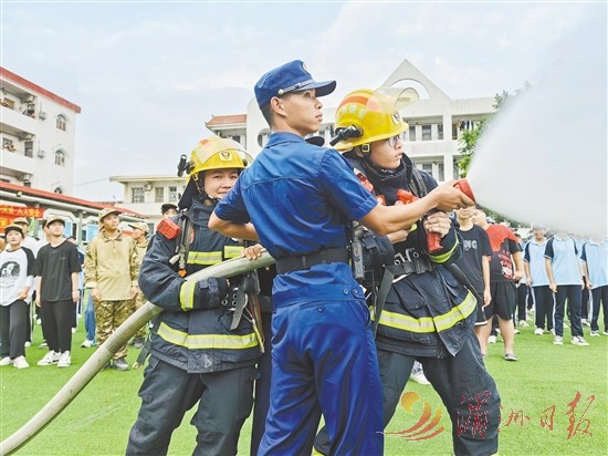 11月7日,仙游县消防救援大队走进仙游职专榜头校区,开展消防技能实操培训,提升师生防火应急能力。全媒体记者 李俊华 摄