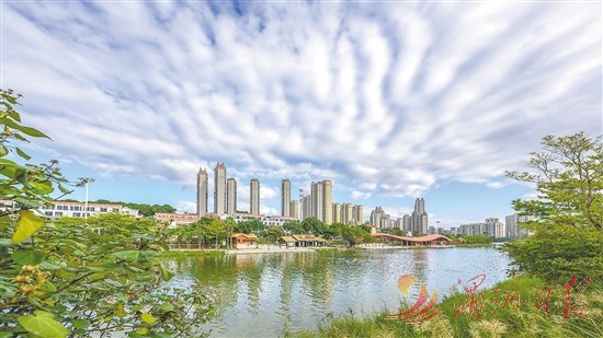 我市深入贯彻落实习近平总书记治理木兰溪的重要理念,把生态文明建设摆在更加突出的位置,坚决守护好蓝天碧海、绿水青山。图为近日,泗华郊野公园,蓝天白云与碧水青山绘就灵秀莆田亮丽底色。
