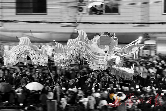2月24日,福建省龙岩市连城县姑田镇在进行元宵游大龙民俗活动。正月十五元宵节,福建省龙岩市连城县姑田镇一年一度的民间元宵游大龙民俗活动如期举行。一条条少则百余节、多则200多节的大龙蜿蜒于乡间田野,穿行于大街小巷,吸引众多游客前来观赏助兴。姑田镇游大龙民俗活动历史悠久,意在祈求风调雨顺、五谷丰登。 新华社记者 姜克红 摄