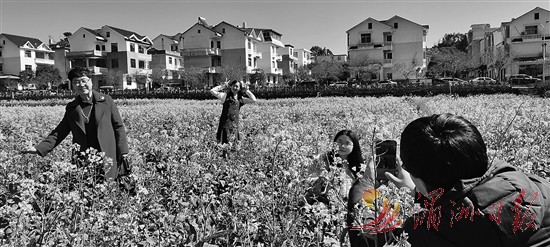 阳春三月,结伴踏青游玩吸引众多女性“芳心”。图为女游客在白沙镇坪盘村油菜花田赏花休闲。林亦霞 摄