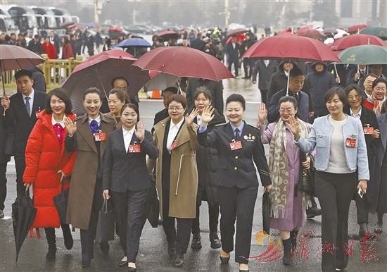 第十四届全国人民代表大会第二次会议在北京人民大会堂开幕。这是全国人大代表走向会场。新华社记者 金立旺 摄