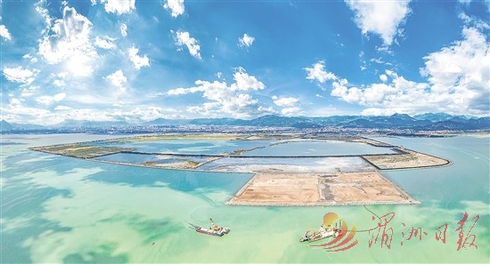 科学规划布局,挺进涵江港,实施围填海造地陆域形成,同步开展疏港道路、码头泊位等基础设施建设,随着产业的入驻,一个全新的滨海产业新城正在初步崛起。3月12日,天气晴好,记者来到现场,站在萩芦溪入海口与木兰溪入海口之间,眼前是“潮平两岸阔,风正一帆悬”的既视感,脚下的堤岸直线延伸向海里,不远处的蓝色海湾人水和谐。随行的涵江港区建设服务中心主任李滨介绍,木兰滨海产业新城区位、交通、产业腹地等资源优势突出,目前有充足的临港后方产业腹地,将为涵江产业绿色高质量发展提供充足的临港产业用地支持。