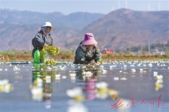 近日,云南省大理白族自治州洱源县右所镇松曲村村民在采摘海菜花。春分来临,繁花似锦的彩云之南迎来“吃春”的时节。在山林原野、田间地头、集市餐厅……那些深扎泥土的根茎、刚冒出来的嫩苗、枝头萌发的新叶、迎春绽放的花朵,都成了时令的美味佳肴。 新华社 发