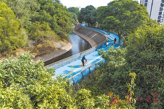 春夏之交,凤凰福道景色宜人,吸引许多市民前去运动打卡。图为近日,游人们在凤凰福道泗华溪段骑行、漫步。 全媒体记者 蔡昊 摄