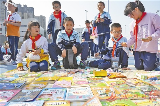 昨日是第29个世界读书日,涵江各地积极开展全民阅读活动。图为涵江区第四实验小学举行第二届读书节“跳蚤市场”活动,学生们把家里闲置的图书、文具带到学校“摆摊”,让“旧书”遇“新主”,享受阅读乐趣。