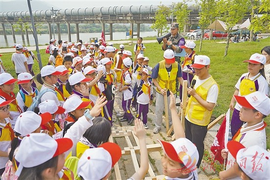 近日,市木兰集团下属二级企业市旅游集团举办多场以“木兰陂桥梁工程”为主题的研学活动,500多名学生参加学习和实践。活动期间,学生们参观木兰陂生态公园、木兰溪治理展示馆,体验搭建木质桥梁等趣味课程(如图),了解古人跨越千年的治水决心和勤劳智慧,近距离感受习近平总书记亲自擘画推动木兰溪治理的艰辛历程和“变害为利、造福人民”的伟大成果。研学活动寓教于乐,获得师生和家长们的好评。