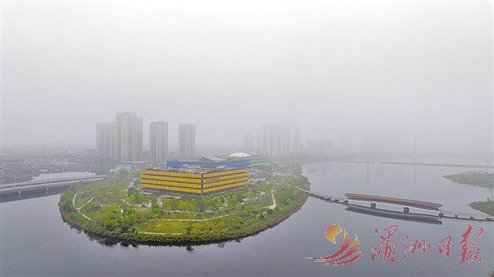 4月23日进入谷雨节气,莆田雾气缭绕,降雨明显。图为昨日市图书馆笼罩在氤氲雾气中。