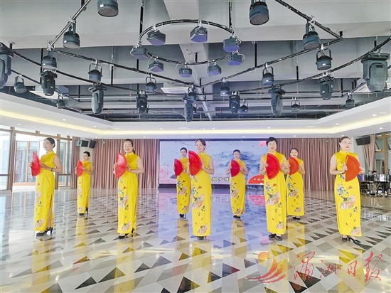 旗袍秀表演《中国旗袍》用文艺而浪漫的方式,完美演绎女性之韵(如图);《蝶花飞舞》刚柔并济、轻松自然,让观众们感受行云流水、连绵不绝的太极意境;舞蹈《一条大河》演绎出祖国的山川湖海,一泻千里的滔滔黄河,一场场精品课程展演呈现出老年大学丰硕的教学成果和学员的时代风采。