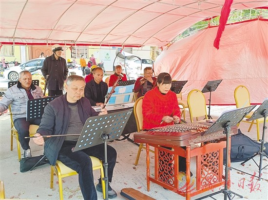 每逢周末或节庆,城厢区华亭镇五云村的十音八乐队便会聚在一起演奏,丰富老年人文化生活。图为近日,该十音八乐队正在演奏《观音送子》经典片段。 全媒体记者 林英 摄