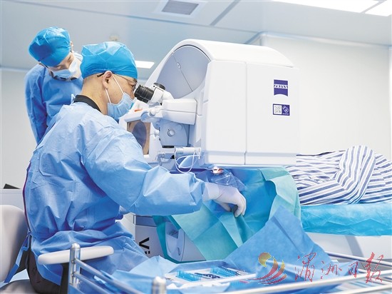“眼睛往上看,放轻松,坚持30秒……”术中,医生耐心引导患者配合。“感谢您的配合,我们的手术完成得很顺利,可以睁开眼睛了……”短短几分钟,眼科主任林福雨就为陈某完成了全飞秒近视手术。陈某激动地说:“还没来得及紧张,手术就快速完成了,不用戴眼镜也能看得清楚了。”