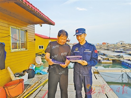 海警执法人员分批分组深入渔港、码头、渔排等渔民聚集地,采用张贴通告、悬挂横幅、发放手册、走访入户、现场咨询等方式,向渔民讲解伏季休渔制度的各项政策法规,帮助渔民认清违反禁渔规定需要承担的法律后果,引导渔民及时靠港伏休,做到“船进港、人上岸、网入库、证集中”(如图)。