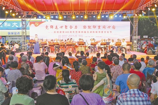 本报讯 6月28日晚,荔城区庆祝中国共产党成立103周年暨第四届玉湖新城邻里文化交流活动举行,以“党群连心聚合力 绘就邻里同心圆”为主题,通过丰富多彩的活动,推进党建引领基层治理走深走实,营造共建共治共享的社区氛围。