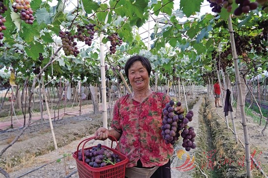 葡萄园负责人兰英介绍,她种植葡萄32年,今年种了5亩多葡萄,不打农药,让葡萄自然成熟,口感更佳,也更健康。今年每亩产量750公斤左右,纯收入可达10万元,日子真是越来越“甜”了。(陈少希 林亦霞 文/图)