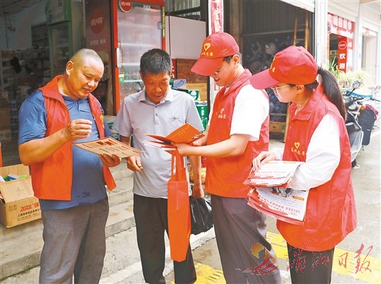 连日来,荔城区退役军人事务局志愿者深入乡村,宣传保障军人地位和权益的法规政策和防范电信网络诈骗等相关法律知识,引导群众自觉尊法学法守法用法。图为志愿者在北高镇高洋村向村民普法。陈文华 摄