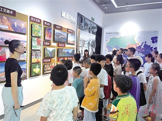 7月12日,荔城区社区青少年宫带领青少年走进市城市规划展示馆,开展“莆阳少年·爱家乡”公益研学,引导孩子们深入了解家乡历史文化,增强家乡自豪感,争做新时代好队员。图为活动现场。全媒体记者 林英 摄