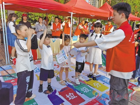 活动现场还设置了生活垃圾分类宣传科普展区、互动体验区,通过知识竞猜、趣味游戏等形式,让现场群众学习垃圾分类小知识(如图)。