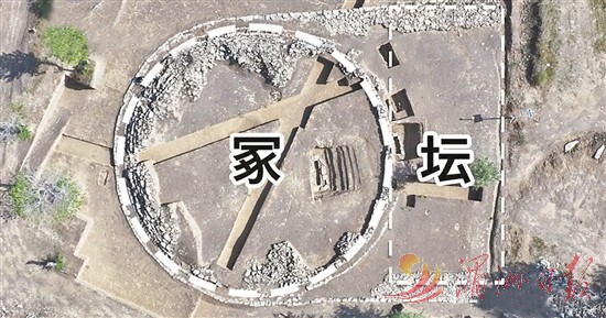 据央视新闻报道,9月22日,在内蒙古赤峰市召开的“中华文明的璀璨星辰——‘红山文化’命名70周年研讨会”上,赤峰市敖汉旗下洼镇元宝山积石冢最新考古成果发布。首次发现了“南方北圆、南坛北冢”的墓葬兼祭祀为一体的建筑遗存(如图),并一次性出土了百余件红山文化玉器,几乎覆盖了红山文化玉器的所有类型。