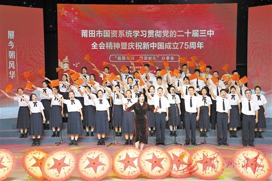 此次分享会的节目均由市属国企员工自编、自导、自演,既有歌颂祖国、弘扬时代精神的讲述、朗诵,又有旋律欢快、节奏动感的合唱、舞蹈,也有展现莆仙文化特色的戏曲表演。大家以饱满的热情和精湛的技艺,为观众呈现了一场视觉与听觉的盛宴,赢得了现场观众的热烈掌声(如图)。