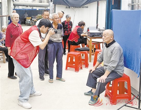 本报讯 (全媒体记者 林晓玲 通讯员 李晨 文/图)为丰富居民精神文化生活,弘扬敬老爱老传统美德,提高老年群体幸福指数,近日,镇海街道联合杭州市益起来公益中心开展“免费拍照暖夕阳 爱心公益传真情”摄影公益行活动,免费为该街道老年群体拍摄肖像照,记录下他们岁月沉淀的慈祥面容(如图)。