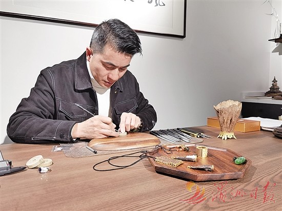 洪风泉是城厢区华亭镇人,高中毕业后到新加坡留学,读设计专业。他从小对手工感兴趣,留学回来后,又到福州大学厦门工艺美术学院进修非遗课程,学习金属银饰、木版年画、大漆工艺等非遗技艺。学成之后,洪风泉成立珠宝公司,把西方审美和中国非遗文化融合,运用在珠宝设计中,既保留了传统文化的精髓,又注入了现代时尚的元素,赋予黄金珠宝饰品更加丰富的文化内涵和独特的艺术魅力。