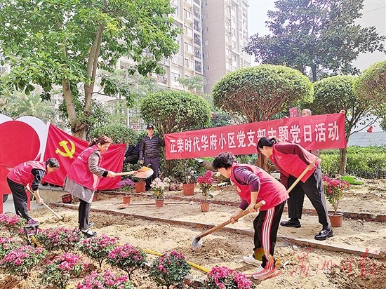 3月12日,荔城区镇海街道梅峰社区联合时代华府小区党支部开展植树节主题党日活动,增强党员和居民的环保意识,共同为社区增添一抹绿意。