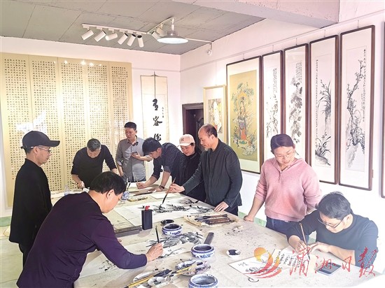 3月10日,仙游县蔡襄书画院常态化邀请书画名家,在蔡襄故居举办书画笔会,弘扬传承蔡襄文化。图为书画名家在进行集中创作。全媒体记者 李俊华 摄