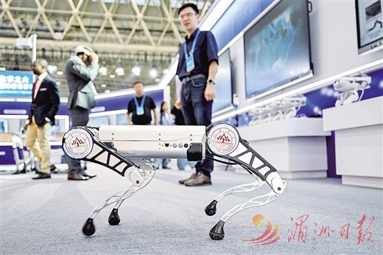 5月14日,参观者在2025世界数字教育大会教育数字化成果展上参观机器狗。当日,以“教育发展与变革:智能时代”为主题的2025世界数字教育大会在武汉开幕。新华社记者 杜子璇 摄