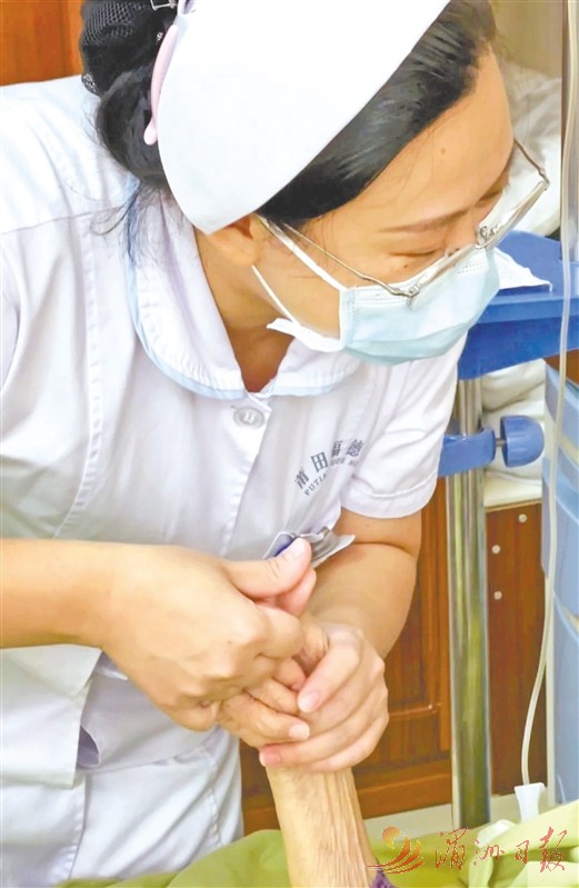 “奶奶,点心送来了,一会儿我们趁热吃点好吗?来,拉钩,再盖个章……”刘金妹像哄孩子般耐心地哄劝着刘奶奶。这温馨的一幕,让守候在旁的子女也被逗笑。