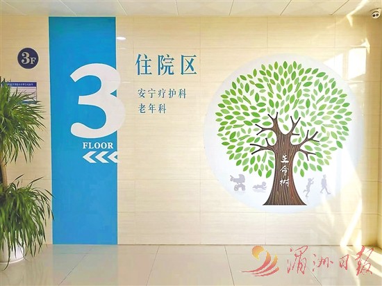 步入位于医院三楼的安宁疗护病区,电梯口墙上枝繁叶茂的“生命树”率先映入眼帘,走廊两侧也新增了绿植与鲜花。“病人和家属偶尔出来走走,看看这些花草,心情会舒畅些。”护士长陈梦介绍道。