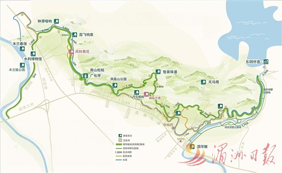记者从莆阳福道地图上看到,莆阳福道北起东圳水库,南至城港大桥,是中心城区西侧一条重要的生态廊道。这条福道的建设,将市区南部木兰溪十里风光景观与市区北部的绶溪公园、泗华郊野公园连接,共同构成53公里的环城福道。