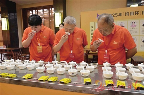 本报讯 (全媒体记者 蔡晨晖 通讯员 林力轩 文/图)8月22日,2025年“妈祖杯”民间茶王赛(武夷岩茶)在武夷山正式开赛。两岸同胞借助妈祖文化这一重要纽带,以茶为媒、以茶会友,为深化两岸融合发展增添生机活力。