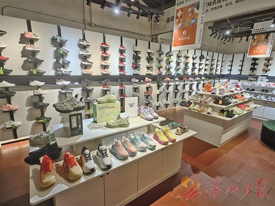 8月24日晚上8时,市区衙后路的“莆田优品”古街店,“莆田鞋”的展销区占据近一半的面积。店内分区清晰,休闲鞋时尚活泼,功能鞋科技感十足,玩觅、沃特、嘉适步等16家我市自主品牌鞋子琳琅满目。一款“木兰溪”的联名款跑鞋陈列在显眼位置,其青绿色的鞋面搭配木兰溪流域造型花纹,吸引了不少年轻顾客试穿。该店店员介绍,这款产品以木兰溪治理25周年为契机,用跑鞋讲述木兰溪故事,旨在传承弘扬木兰溪治理理念。设计上以木兰溪河道裁弯取直为蓝图,以久久为功的治水故事为主旨,将千年传奇与现代时尚风格相结合,碰撞出独特的潮流火花,受到许多消费者的喜爱。