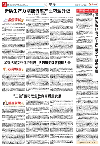 “打铁必须自身硬”。要服务好、支撑好国家和区域的产业转型升级发展,职业教育更要提升自身的硬实力。职普融通、产教融合、科教融汇,是当前提升职业教育人才培养质量的重要动力,是职教高质量发展的“金钥匙”。因此,要以更宽的视野、更实的举措,践行“三融”,进一步增强职业教育人才培养的适应性,绘就推动职业教育高质量发展的新蓝图。