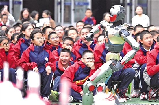 10月13日,新疆生产建设兵团第一中学学生在科技节开幕式上观看智能机器人跳舞。近日,新疆生产建设兵团第一中学举办以“风华兵一卓行未来 AI启航智越江海”为主题的科技节活动,通过体验科学实验、开展科技创新制作等活动,培养学生的创新精神,以及对人工智能技术的认识和运用能力。 新华社记者 王菲 摄