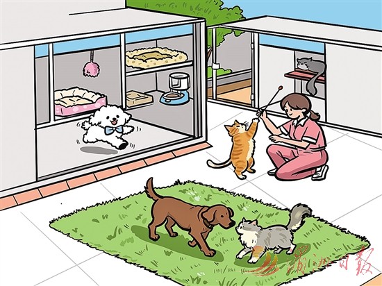 记者留意到,这类“宠物酒店”服务模式日前在美团平台推广,消费者通过美团App即可在线实时查看宠物酒店的具体服务、价格详情等,实现透明消费、一键预约。