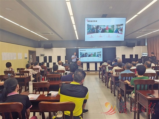 安全出行是绿色出行的重要保障。学校邀请交警、消防部门举办了“安全伴我行”绿色出行专题讲座(如图)。讲座聚焦老年人出行特点,通过案例分析、视频演示等直观方式,讲解安全上下车、步行骑行注意事项等知识,受教育人员3000余人次。
