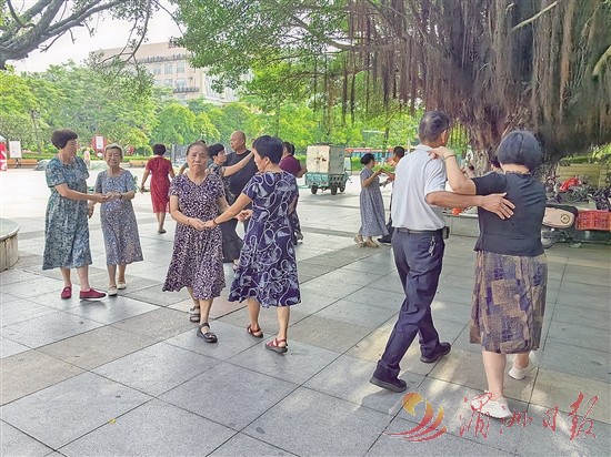 秋季的早晨,市区凤凰山广场的大树下,老人们伴着晨光悠然起舞,尽显活力与惬意。全媒体记者 林英 摄