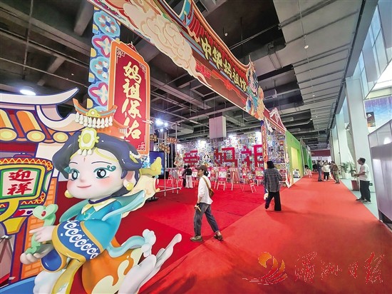 在传统珍品之外,“数字+非遗”的创新呈现让古老文化焕发青春。中华妈祖数字馆专为“Z世代”打造的妈祖文化IP,成为展会的“流量密码”。沉浸式L型空间里,多维彩屏让数字妈祖“活”了起来。可触摸脱胎漆器、九宝吉祥物、“妈祖世界·瓷行天下”陶瓷大展、“我爱妈祖”少儿画展及潮玩周边齐上阵,参观者可一站式沉浸解锁妈祖文化新体验。作为妈祖文化的发祥地,莆田千百年来通过“海上丝绸之路”将妈祖精神传播至50个国家和地区,而艺博会则以数字技术为桥,让这一传统文化IP在当代实现跨界传播。