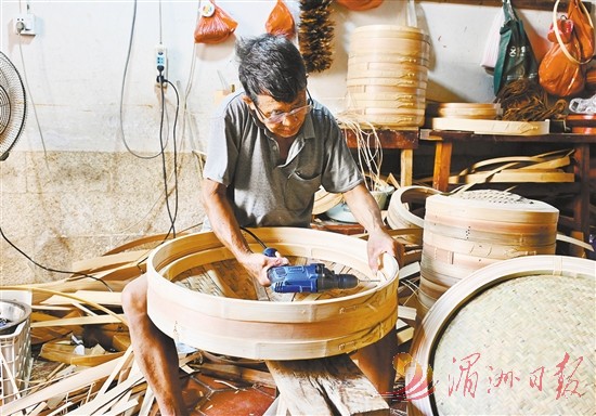 不久前,在东埔镇度下村,老手艺人在作坊里专注地制作蒸笼,让传统炊具承载烟火气与匠心。 全媒体记者 杨怡玲 摄